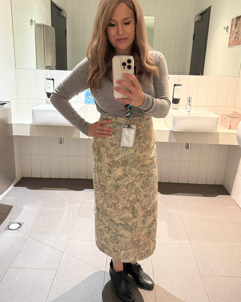 The fit of this skirt is lovely, the fabric is gorgeous, I love it, thank you
