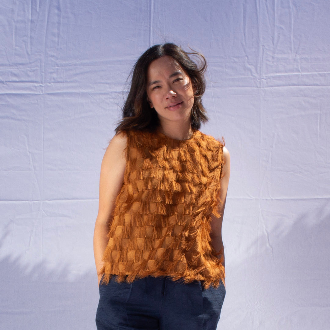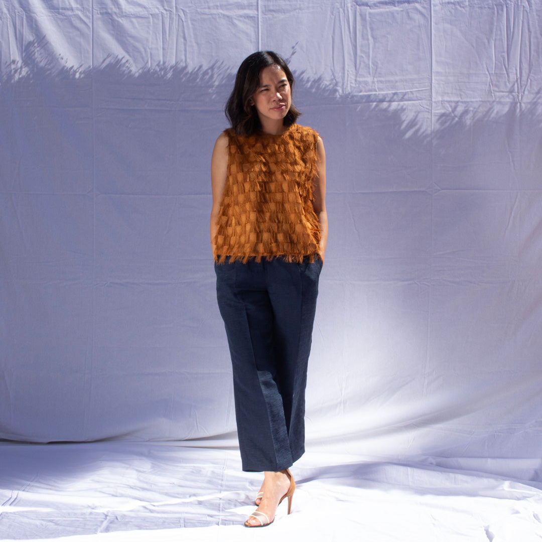 A top to turn heads and add interest to any look. The delicate fabric is slightly transparent, but can certainly be worn on it's own like it is here on founder, Denise or alternatively can be worn with a slip underneath.