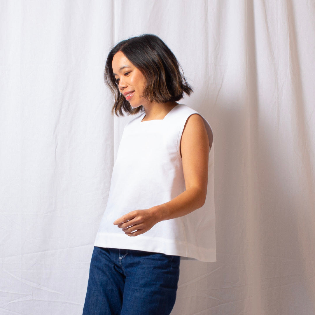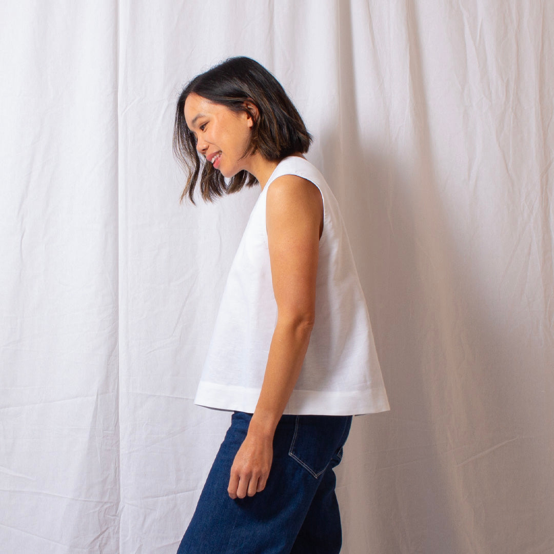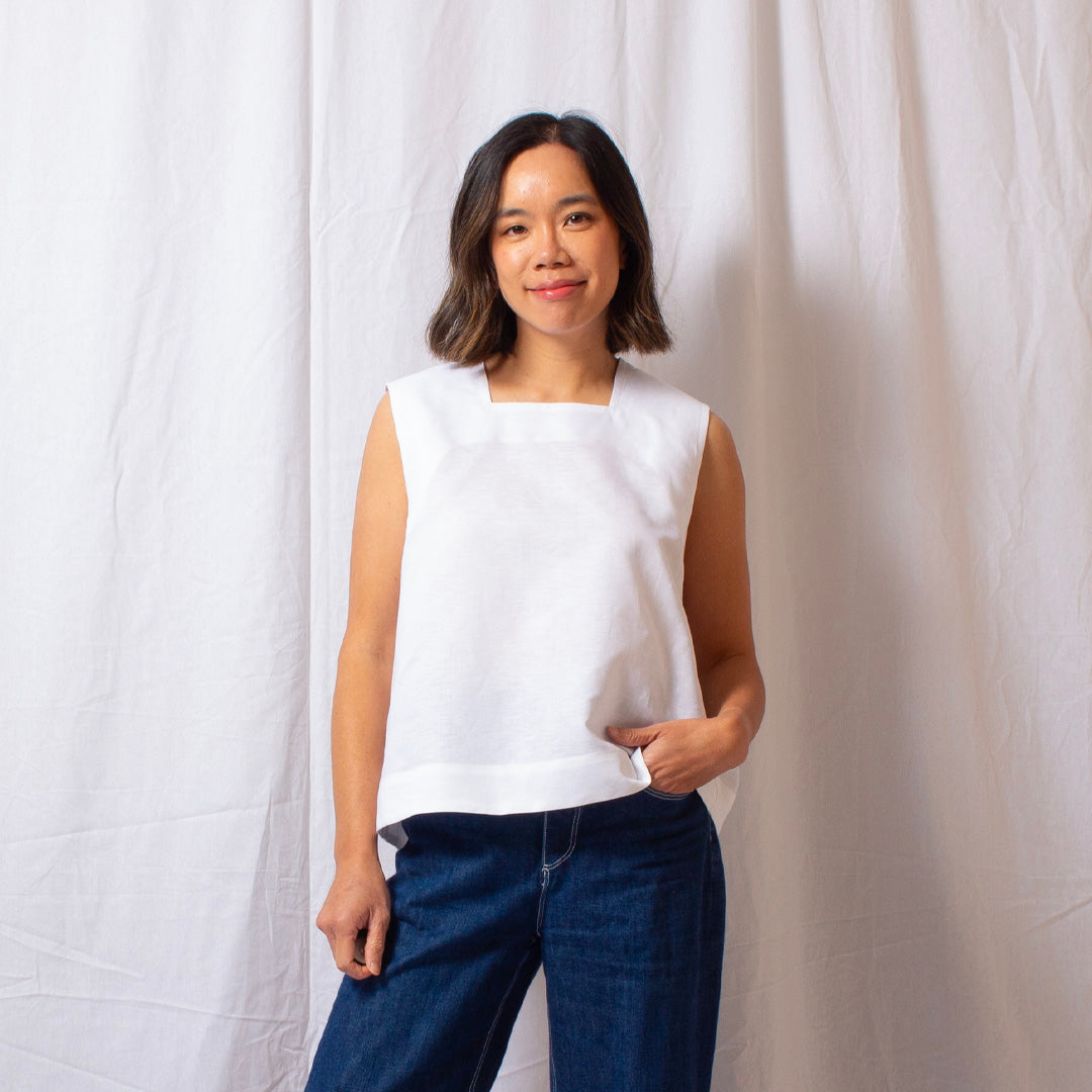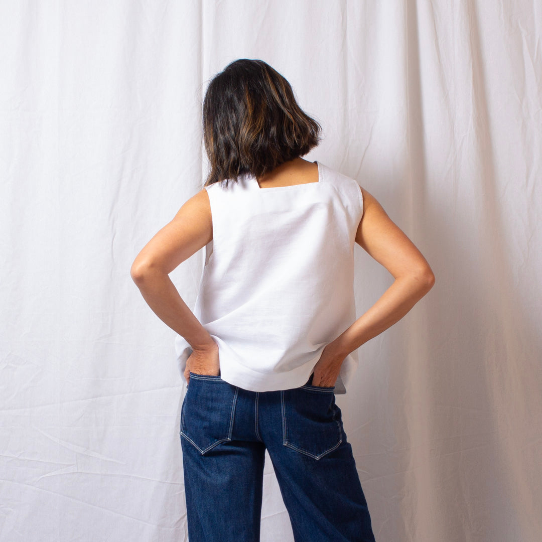 Elaine Dee’s take on the classic white top; timeless, versatile, and quietly elevated. The Frame Top features a clean, modern, structured neckline and an easy, flattering fit that complements any look.